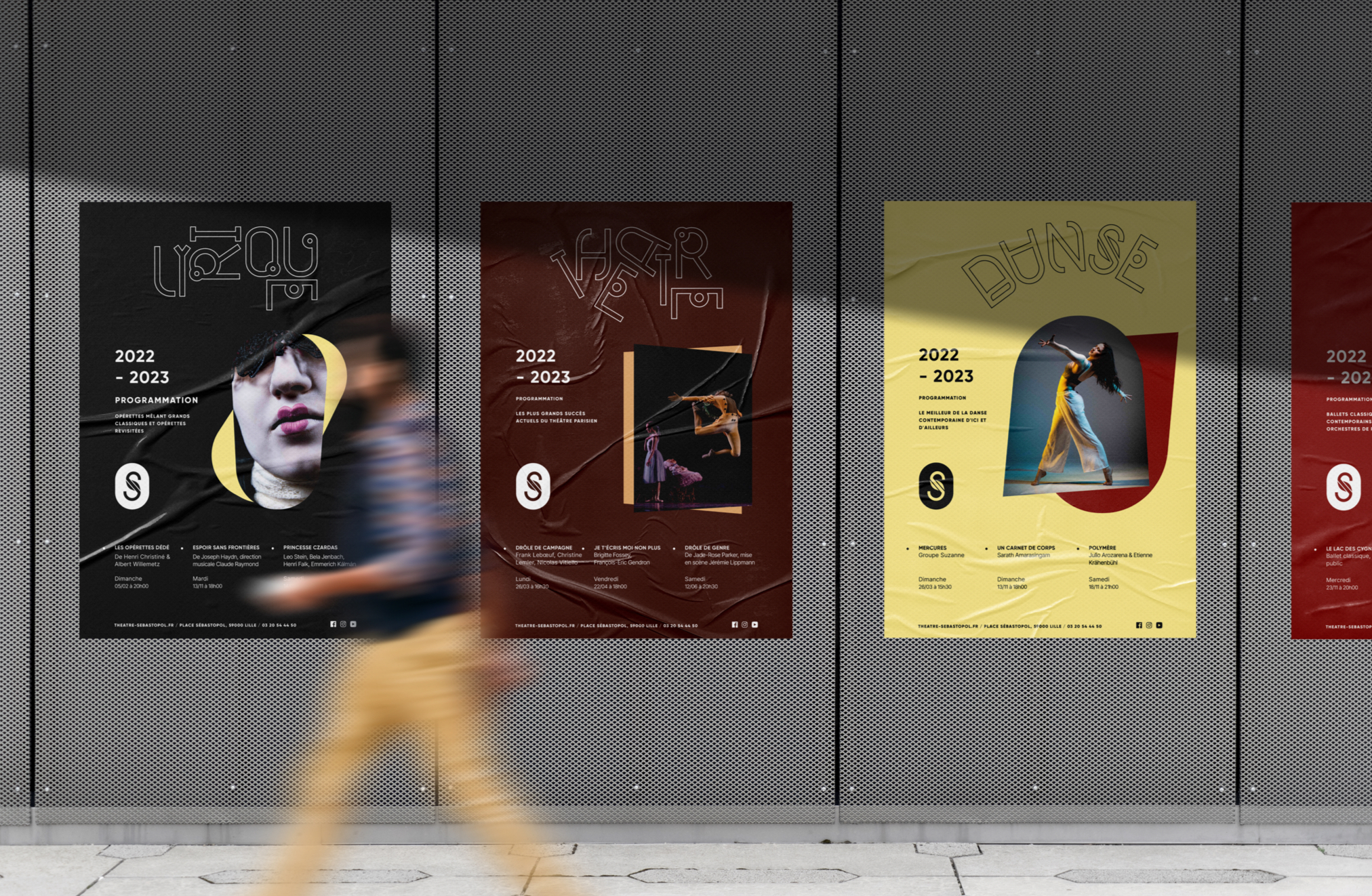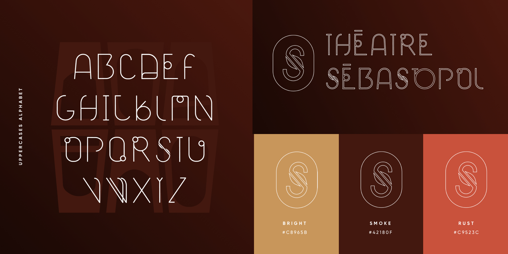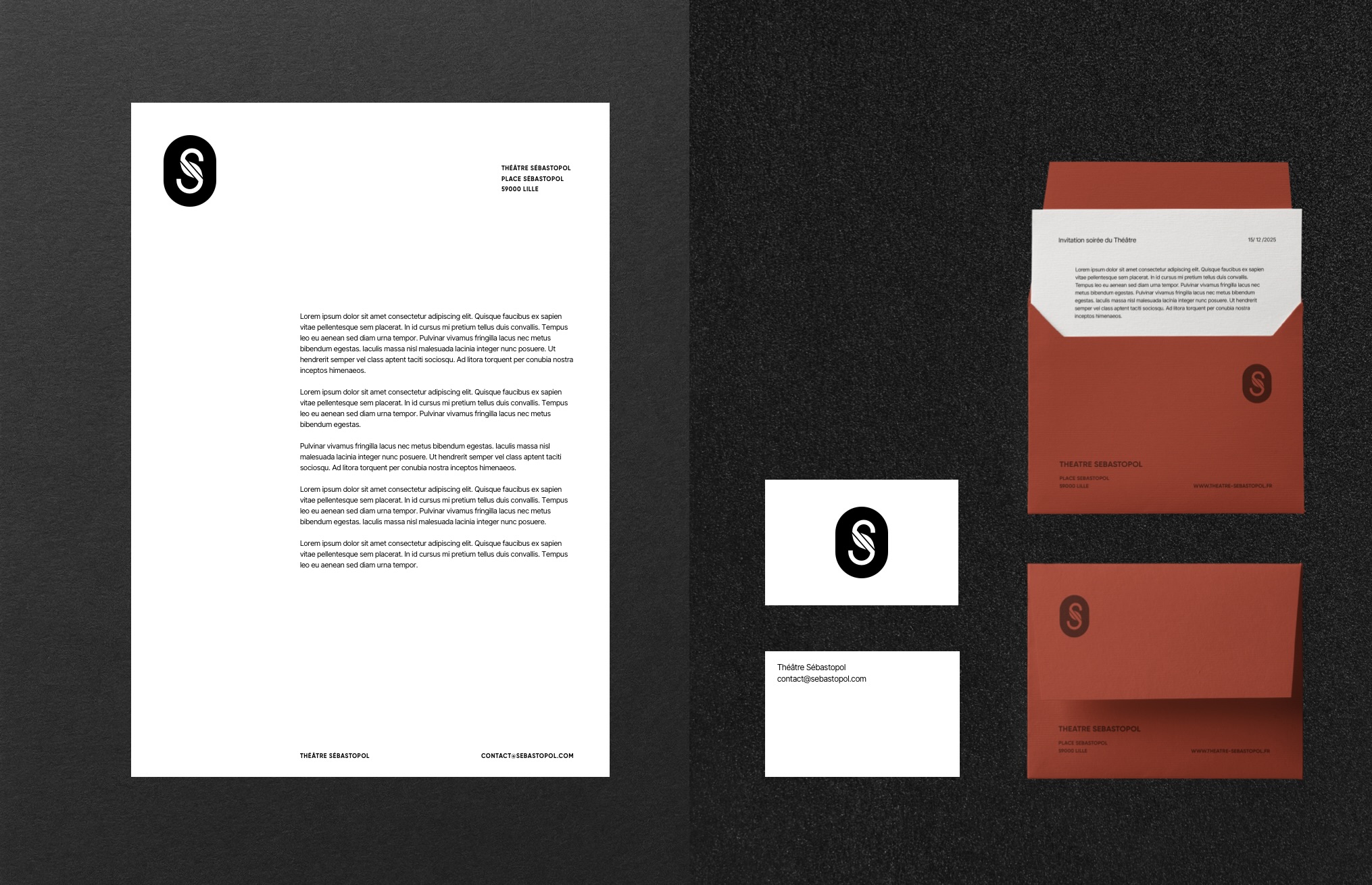 Direction artistique : Création d’une typographie : « la Sébastographie » / Conception d’un monogramme, et de l’identité visuelle du théâtre Sébastopol / Campagne d’affichage / Enveloppe et papier en-tête.